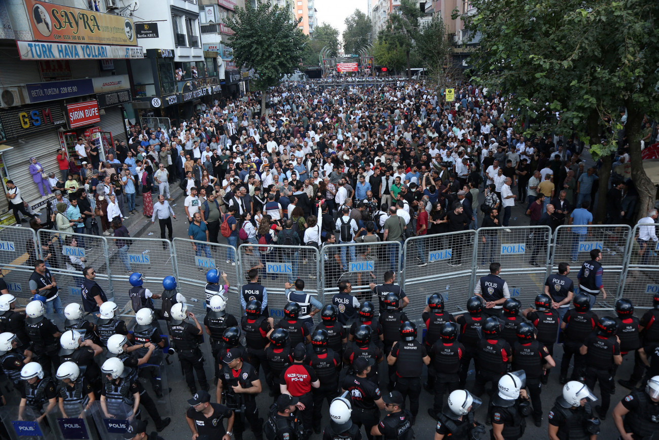 Δύο κόμματα της αντιπολίτευσης στην Τουρκία κάλεσαν σε διαδηλώσεις (πάνω φωτογραφία αρχείου από διαδήλωση στην Diyarbakir στις 13/10) σήμερα στην Κωνσταντινούπολη μετά τη σύλληψη και αντικατάσταση ενός δημάρχου ο οποίος κατηγορήθηκε ως μέλος του Εργατικού Κόμματος του Κουρδιστάν (PKK).