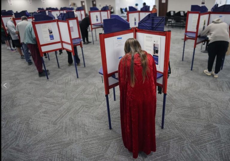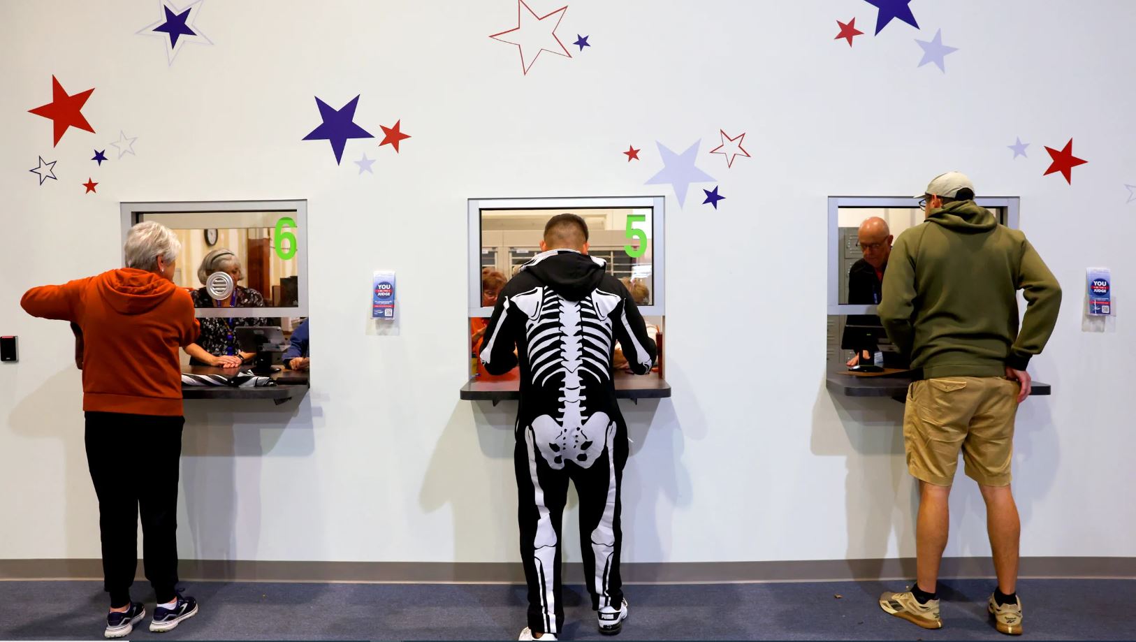 Στις ΗΠΑ έχουν μια έντονη διάθεση για αυτοσαρκασμό. Τόση ώστε κάποιοι από τους ψηφοφόρους να ντυθούν haloween-ιάτικα για να πάνε να ψηφίσουν.