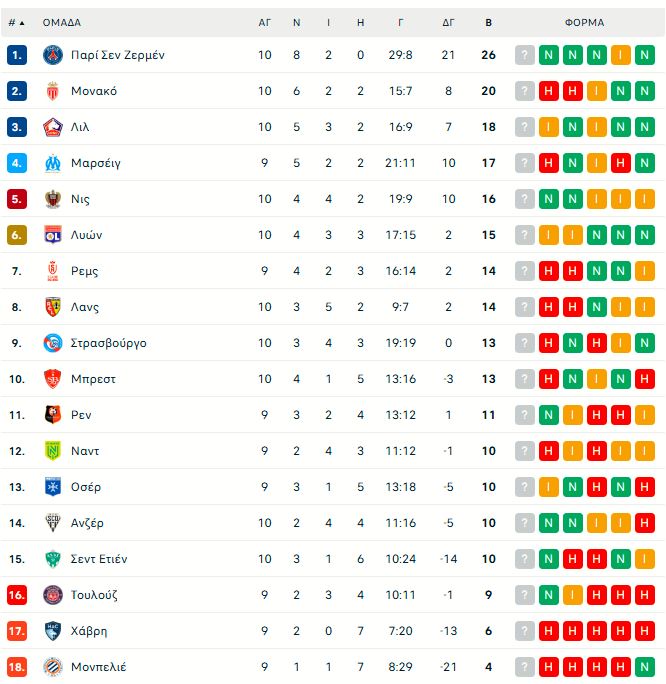 Η αγωνιστική ολοκληρώνεται αύριο (3/11), με τις αναμετρήσεις Τουλούζ – Ρεμς (16:00), Οσέρ – Ρεν (18:00), Χάβρη – Μονπελιέ (18:00) και Ναντ – Μαρσέιγ (21:45).