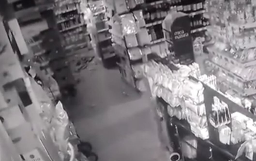 Χαρακτηριστικό είναι το στιγμιότυπο από κάμερα ασφαλείας καταστήματος σούπερ μάρκετ στην περιοχή της Ποτίδαιας την ώρα του σεισμού.