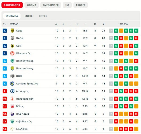 Ο Άρης νίκησε σήμερα τον Λεβαδειακό στο «Κλεάνθης Βικελίδης» με 3-1, Οι «κιτρινόμαυροι» συνεχίζουν στην πρώτη θέση της Stoiximan Superleague, έπειτα από 10 αγωνιστικές, έχοντας 21 βαθμούς, ενώ ο Λεβαδειακός παρέμεινε στην τελευταία θέση με 6 βαθμούς.