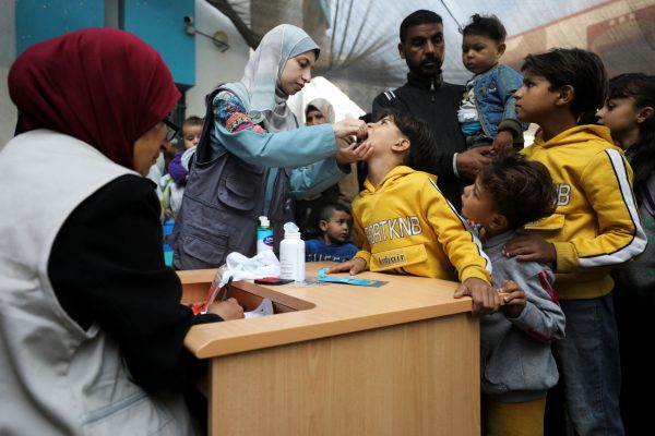 Τα παιδιά της Παλαιστίνης εμβολιάζονται κατά της πολιομυελίτιδας κατά τη διάρκεια του δεύτερου γύρου των μιας εκστρατείας εμβολιασμού, εν μέσω της Ισραήλ-Χαμάς, στην πόλη της Γάζας, 2 Νοεμβρίου 2024.