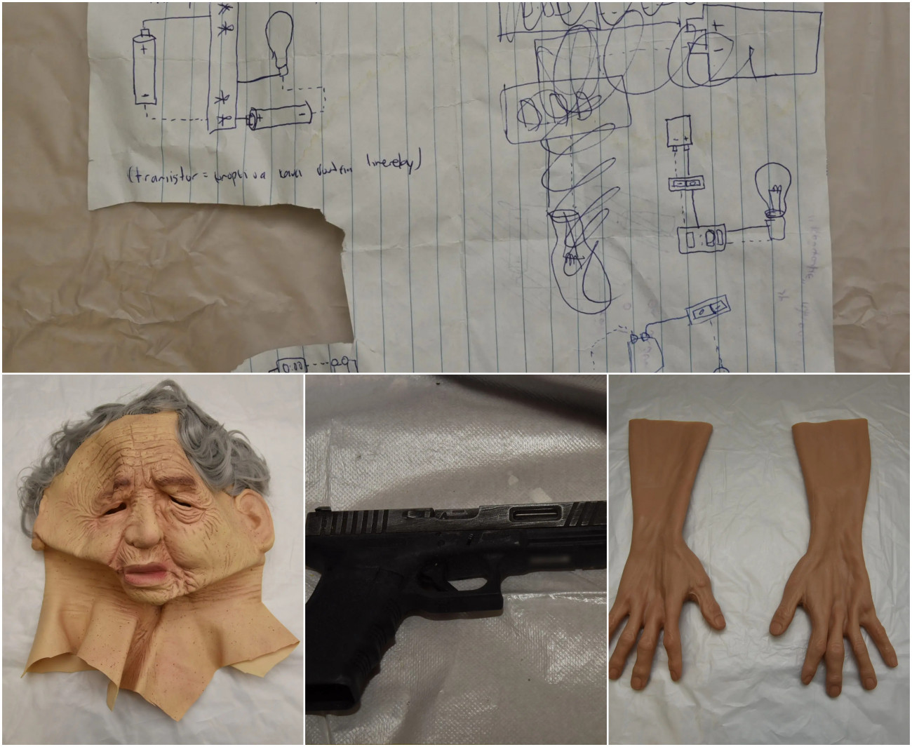 Οι αστυνομικοί που βρέθηκαν στην οδό Αρκαδίας 4, αλλά και στα διαμερίσματα που διέμεναν οι εμπλεκόμενοι στην υπόθεση, εντόπισαν αρκετά μέσα αλλοίωσης των χαρακτηριστικών του προσώπου, όπως περούκες και ολοπρόσωπες μάσκες, αλλά και προσθετικά χεριών από καοτσούκ, που θα χρησιμοποιούσαν οι τρομοκράτες για να μην αφήσουν αποτυπώματα.