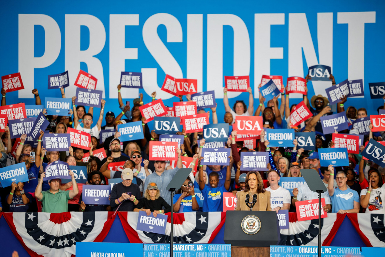 «Ψηφίστε υπέρ της ελευθερίας», ένα από τα σλόγκαν σε προεκλογική συγκέντρωση της Κάμαλα Χάρις (Reuters)