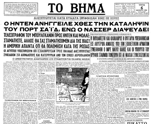 «ΤΟ ΒΗΜΑ», 6.11.1956, Ιστορικό Αρχείο «ΤΟ ΒΗΜΑ» & «ΤΑ ΝΕΑ»