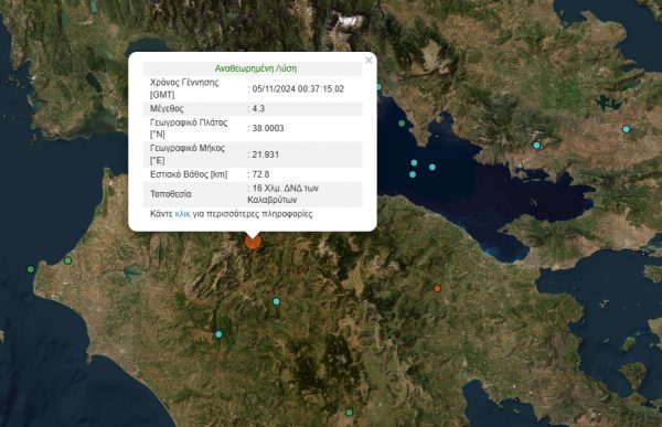 Σύμφωνα με την αναθεωρημένη λύση του Γεωδυναμικού Ινστιτούτου, ο σεισμός ήταν 5,2 Ρίχτερ και σημειώθηκε στις 19:05 την Κυριακή 3 Νοεμβρίου.