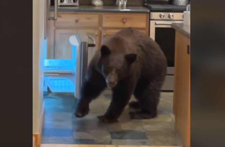 Η Τζάζμιν Μοντάλβο δημοσίευσε ένα βίντεο στο TikTok που δείχνει τη στιγμή που κατέβηκε τις σκάλες του σπιτιού της στο Truckee της Καλιφόρνια, μόνο και μόνο για να διαπιστώσει ότι είχε έναν απρόσκλητο επισκέπτη. Ο επισκέπτης ήταν μια μεγάλη αρκούδα, η οποία περιφέρονταν στην κουζίνα ψάχνοντας στο ψυγείο κάτι για να ικανοποιήσει την βραδινή της λιγούρα.