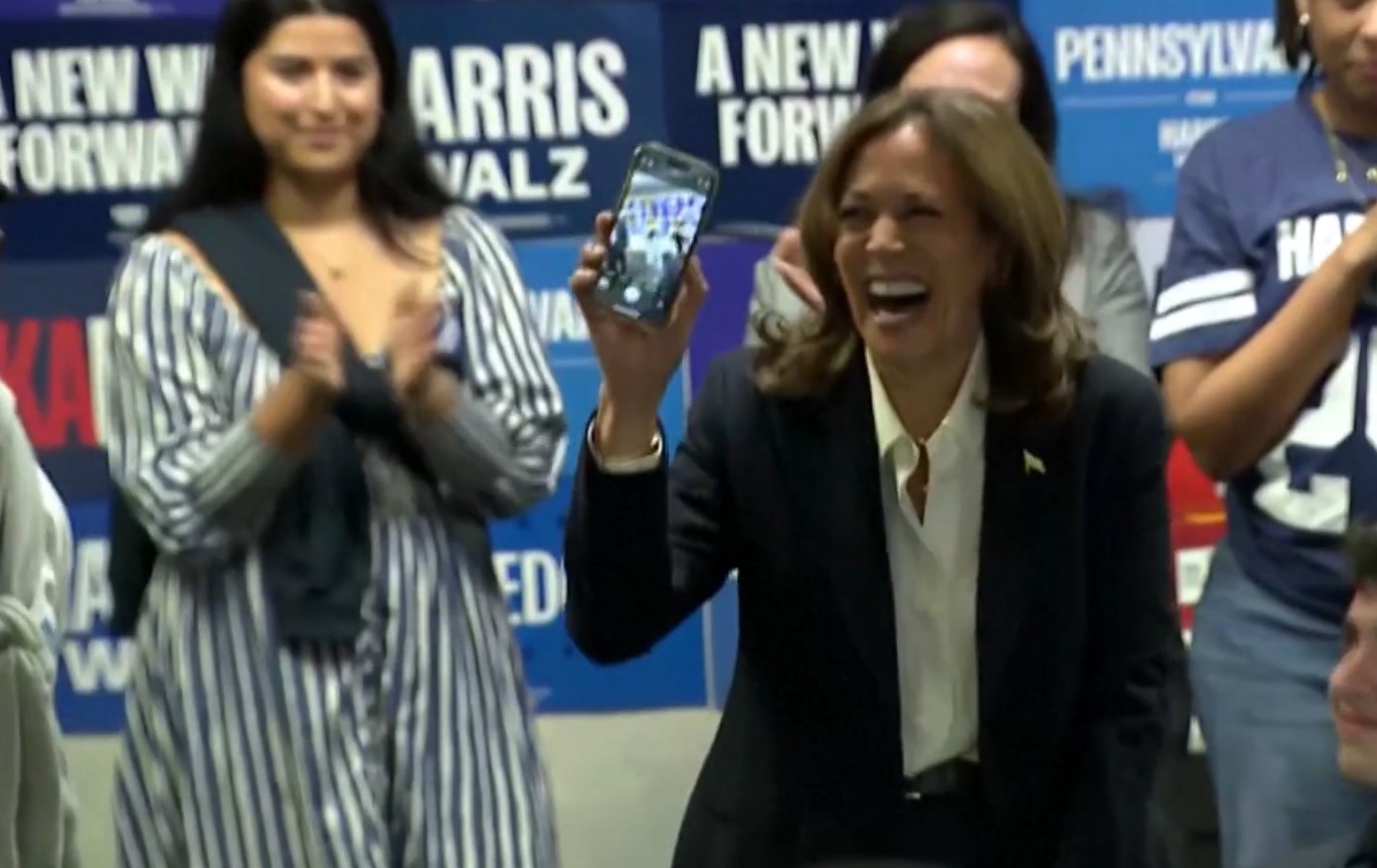 Ωστόσο σε ένα πλάνο η Χάρις γυρνά την οθόνη του κινητού προς τη μεριά των υποστηρικτών της και εκεί φαίνεται πως η κάμερα είναι ανοιχτή και δεν υπάρχει καμία κλήση σε εξέλιξη.