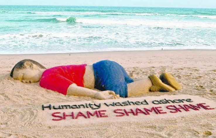 Τον Σεπτέμβριο του 2015 ο Sudarsan Pattnaik έκανε ένα γλυπτό αποτυπώνοντας την εικόνα του μικρού Αϊλάν, του νεκρού παιδιού από τη Συρία, που το άψυχο σώμα του εκβράστηκε στα τουρκικά παράλια. Η πρόταση από κάτω «Τα κύματα έχουν ξεβράσει την ανθρωπιά. Ντροπή, ντροπή, ντροπή» αποτύπωσε την θλίψη που ένιωθαν όσοι είδαν την φωτογραφία.