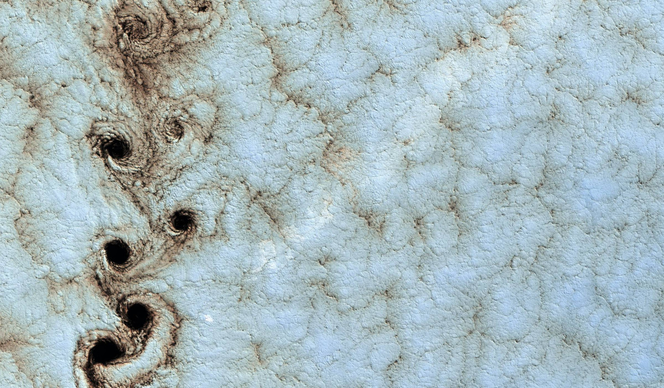 Στην εικόνα παρουσιάζονται οδοί στροβίλων Von Karman στο Βόρειο Αιγαίο. Οι στρόβιλοι αυτοί που πήραν το όνομά τους από τον μηχανικό Von Karman, δημιουργούνται στην υπήνεμη πλευρά εμποδίων που παρεμβάλλονται στην ροή του ατμοσφαιρικού αέρα.