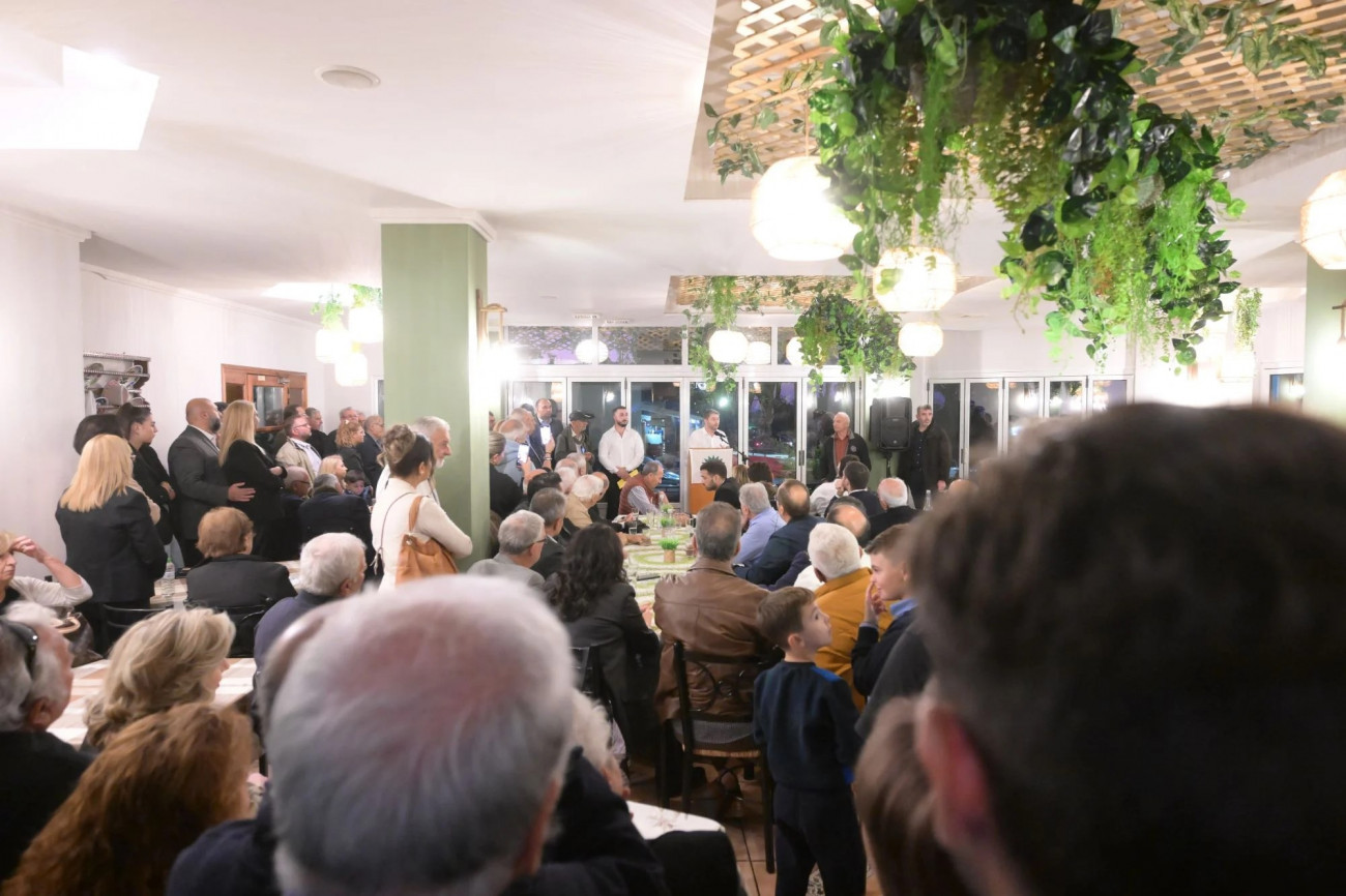 Ο Νίκος Ανδρουλάκης μιλάει σε κατοίκους χωριού της Ρόδου, την οποία επισκέφθηκε για να παρευρεθεί στο συνέδριο της ΚΕΔΕ