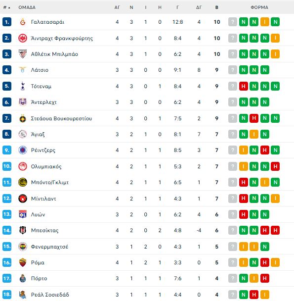 Μετά το χθεσινό (6/11) παιχνίδι της Μπεσίκτας με τη Μάλμε (2-1), η 4η αγωνιστική της League Phase του Europa League συνεχίζεται σήμερα με το πρώτο σκέλος των αγώνων να ολοκληρώνεται.