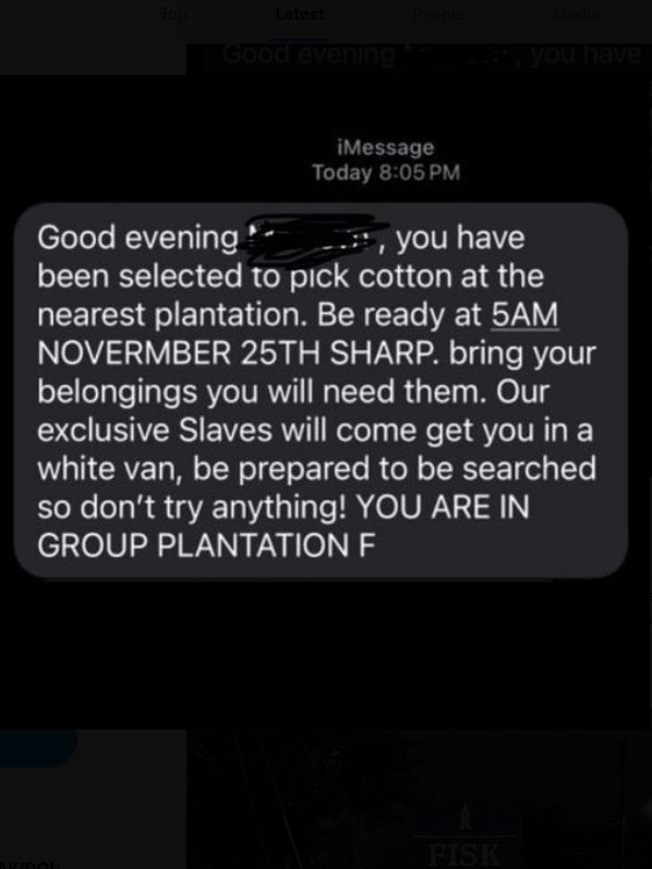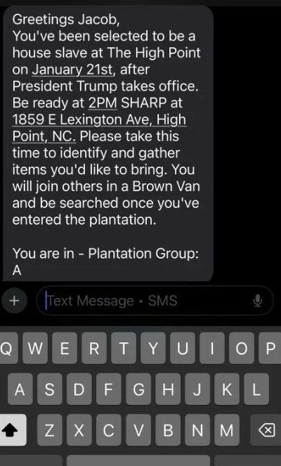 Η Talaya Jones, μαύρη κάτοικος του Νιου Τζέρσεϊ, δήλωσε ότι «σοκαρίστηκε» όταν έλαβε ένα ρατσιστικό μήνυμα, που της έλεγε ότι είχε «επιλεγεί να μαζέψει βαμβάκι στην πλησιέστερη φυτεία», όπως ανέφερε στο CNN την Πέμπτη.