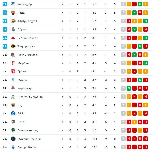 Στο τέλος της έφτασε η 4η αγωνιστική της League Phase του Europa League με το ελληνικό ενδιαφέρον να είναι μεγάλο αφού στη «μάχη» ρίχτηκαν τόσο ο Ολυμπιακός, όσο και ο ΠΑΟΚ.
