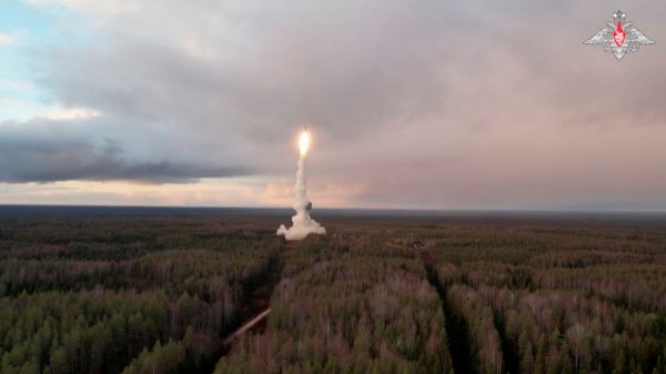 Ένας διηπειρωτικός βαλλιστικός πύραυλος Yars εκτοξεύεται κατά τη διάρκεια δοκιμής από το κοσμοδρόμιο του Πλεσέτσκ στην περιοχή του βόρειου Αρχανγκέλσκ της Ρωσίας, σε αυτή τη φωτογραφία από βίντεο που δημοσιεύτηκε στις 29 Οκτωβρίου 2024.