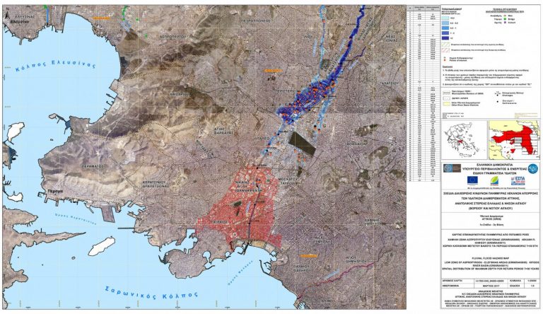 Οι μελέτες κινδύνου της επίσημης επιστημονικής μελέτης που εκπονήθηκε το 2017-2018 από το ΥΠΕΝ για την Αττική και η οποία διαμόρφωσε τους χάρτες επικινδυνότητας πλημμύρας δείχνουν ότι: Καμίνια, Ρέντης, Νέο Φάληρο, Μοσχάτο, Περιστέρι, δυτική Αθήνα, Νέα Φιλαδέλφεια, Ίλιον, Άγιοι Ανάργυροι και όχι μόνο βρίσκονται «στα κόκκινα» σε περίπτωση καταιγίδας, αν συμβεί κάτι που θα μοιάζει έστω και λίγο με ότι έγινε στον «Ιανό», ή στον «Daniel».