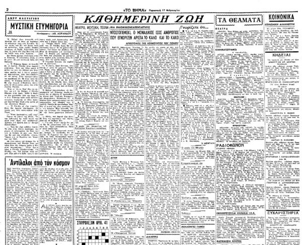 Εις τας 28 Ιανουαρίου 1881, πριν 75 χρόνια ακριβώς, ένας άνδρας εξήντα ετών, ασθενικός, που εις όλην την ζωήν του υπήρξε θύμα μιας περίεργης και ακατάβλητης ασθενείας, έκλεινε για πάντα τα μάτια του εις την Αγίαν Πετρούπολιν. Ο Ντοστογιέφσκι, ο μοναδικός ίσως άνθρωπος εις τον κόσμον που εγνώρισε τόσο καλά το Καλό και το Κακό, εγκατέλειψε για πάντα την ζωή και την πόλιν της ομίχλης, που υπήρξεν ο συνεχής περίπου διάκοσμος όλων των βιβλίων του. Δεν θα ταίριαζε εις ένα άρθρον εφημερίδος να καταπιασθή για χιλιοστή φορά με την βιογραφίαν του συγγραφέως ή με την ανάλυσιν του έργου του, που έχει μεταφρασθή εις όλες τις γλώσσες του κόσμου. Αι επέτειοι όμως του είδους αυτού μας παροτρύνουν εις το να πάρωμε πάλι εις τα χέρια μας αυτά τα βιβλία και να ξαναδιαβάσωμε για πολλοστήν φορά αυτές τις σελίδες από θειάφι και φως, που ανεστάτωσαν τόσες συνειδήσεις.