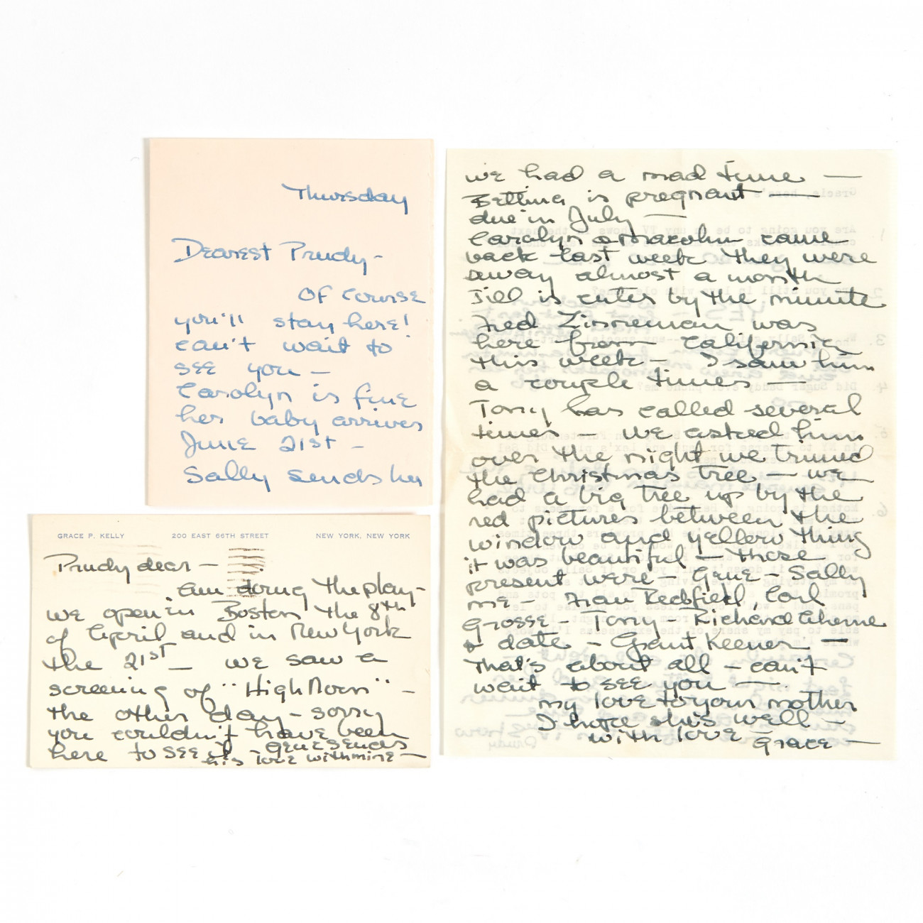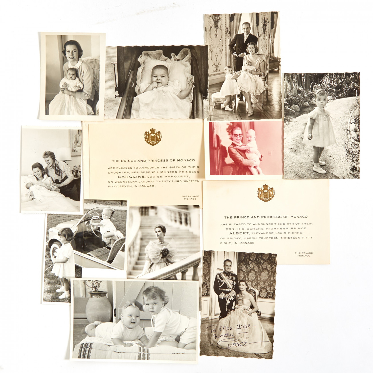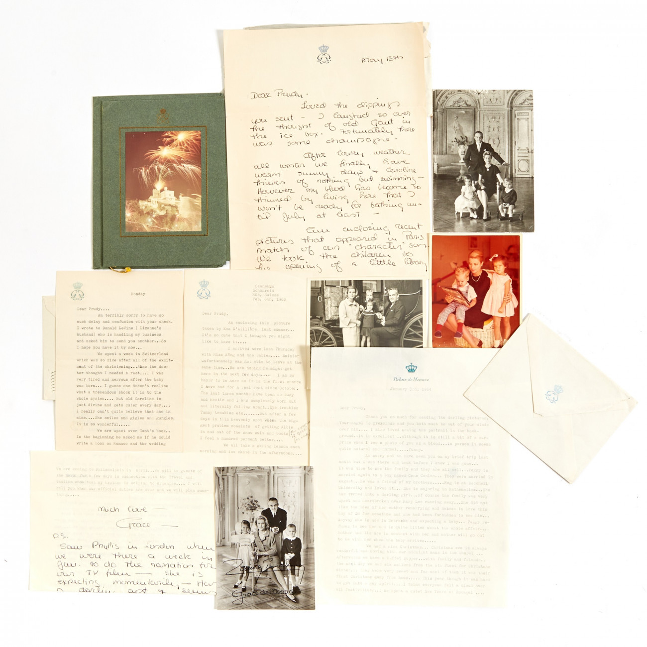 Χειρόγραφες και δακτυλογραφημένες επιστολές, καρτ ποστάλ, φωτογραφίες και άλλα εφήμερα που έστειλε η Γκρέις Κέλι στην πρώην συγκάτοικο και προσωπική της γραμματέα Προύντενς Γουάιζ Κούντνερ θα δημοπρατηθούν από τον οίκο Doyle. Εκτός από μια πολυετή φιλία, σε αυτά αποτυπώνεται με μελάνι η φιλοδοξία, η άνοδος και ο αρραβώνας της Γκρέις Κέλι με τον σχεδιαστή μόδας Όλεγκ Κασίνι.
