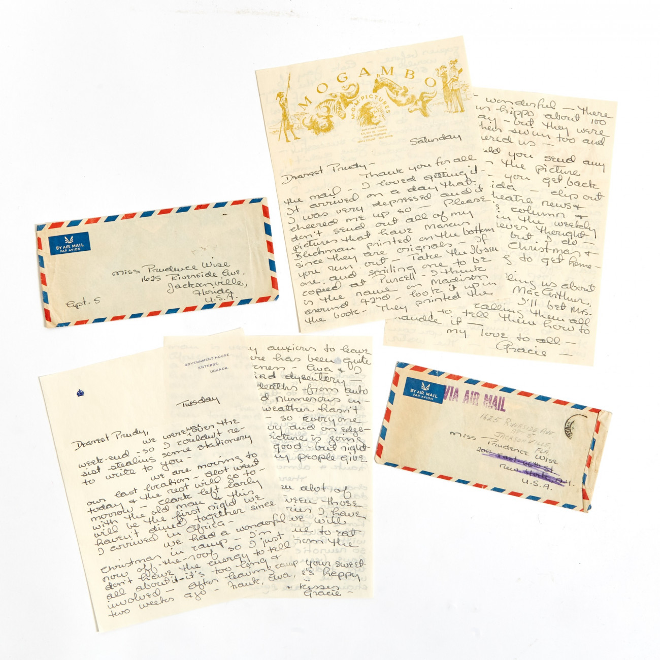 Σε άλλη επιστολή του 1953 που γράφτηκε σε ένα δωμάτιο του ξενοδοχείου Savoy στο Λονδίνο, όταν πλέον το «Moγκάμπο» ήταν στο στάδιο του μοντάζ, η Κέλι γράφει ότι ο Γκέιμπλ και ο παραγωγός της ταινίας Σαμ Ζίμπαλιστ «πετσοκόβουν την ταινία, μου ραγίζει η καρδιά — δεν μιλάω με τον Κλαρκ αυτές τις μέρες, ούτε η Άβα — αλλά μην το πεις σε κανέναν αυτό».