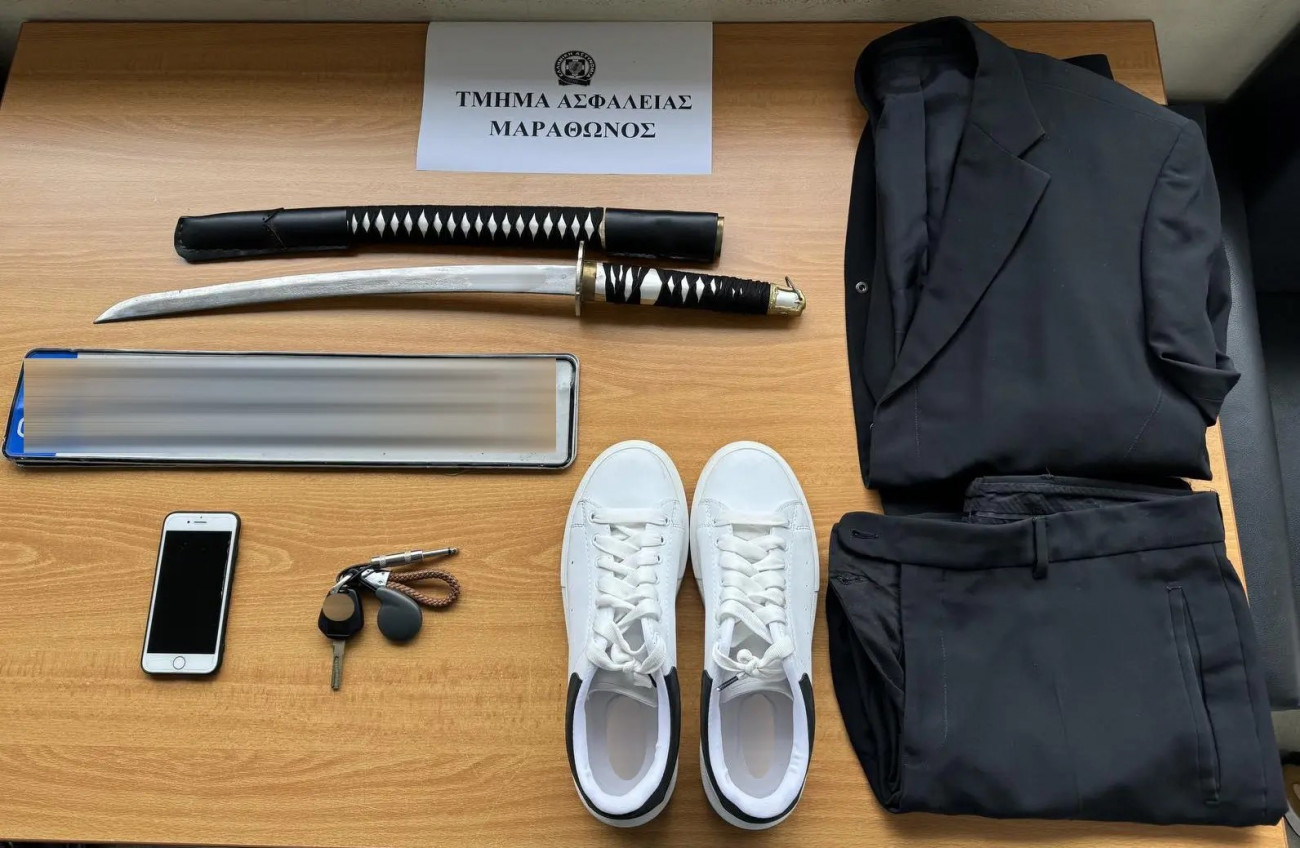 Στην κατοχή του και εντός της οικίας του βρέθηκαν και κατασχέθηκαν, σπαθί τύπου σαμουράι και ένα κινητό τηλέφωνο. Ωστόσο αυτό που είναι ιδιαίτερα επιωαρυντικό εις βάρος του είναι οτι βρέθηκαν και τα ρούχα που φορούσε κατά τη διάπραξη της ληστείας στη Νέα Μάκρη.
