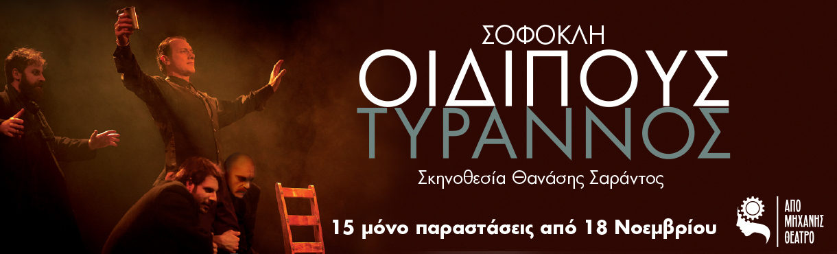 Η βραβευμένη παράσταση «Οιδίπους Τύραννος» του Σοφοκλή σε σκηνοθεσία και ερμηνεία Θανάση Σαράντου, επαναλαμβάνεται για 15 μόνο παραστάσεις στο Από Μηχανής Θέατρο από 18 Νοεμβρίου.