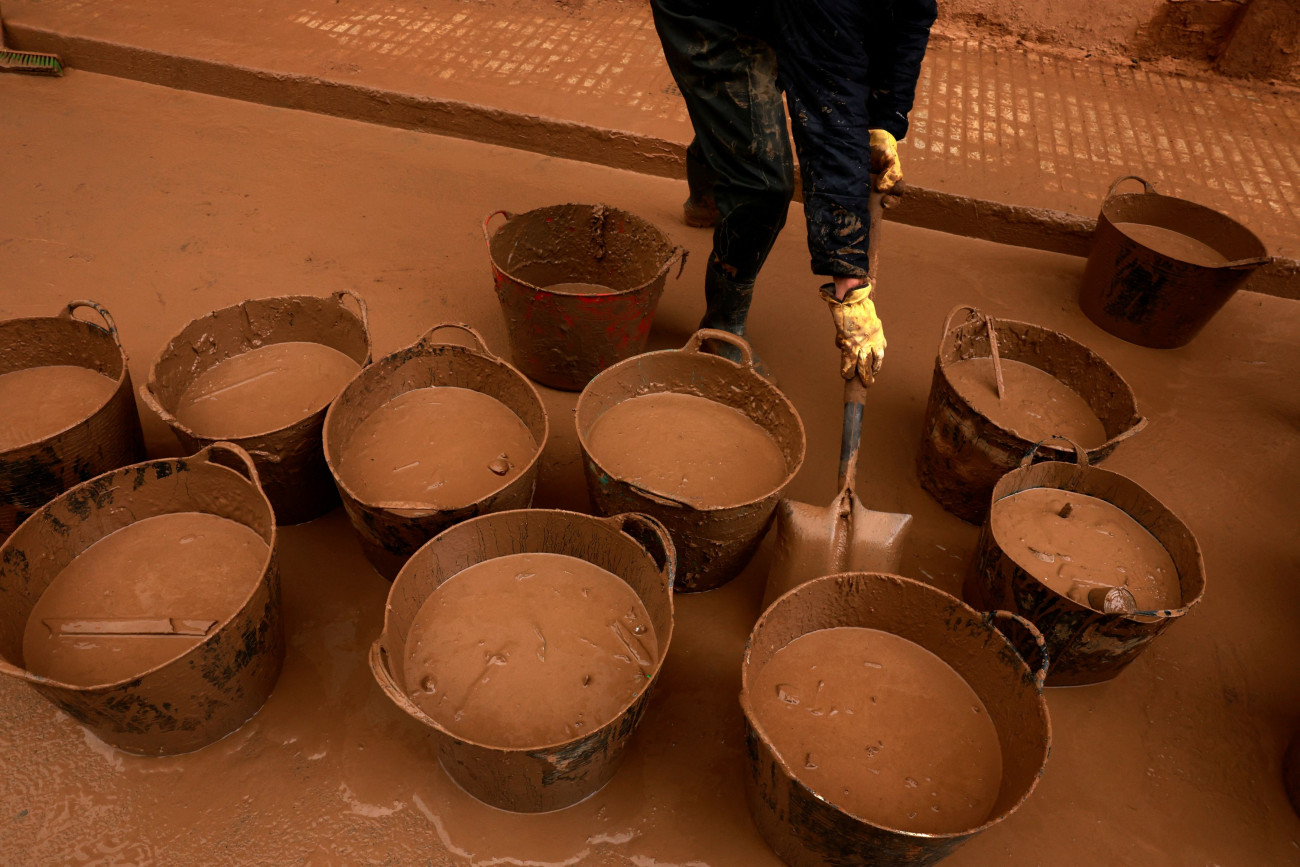 Άνθρωποι περπατάνε στις λασπώδεις περιοχές που είχαν πλημμυρίσει στη Βαλένθια. REUTERS/Vincent West