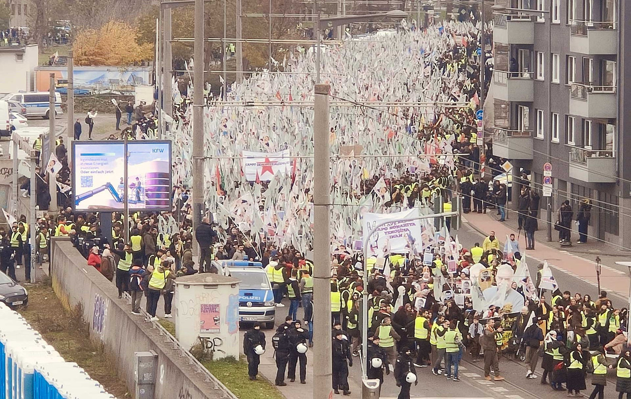 Χιλιάδες διαδηλωτές πραγματοποίησαν πορεία στην Κολωνία το Σάββατο (16/11), με αίτημα την απελευθέρωση του Κούρδου ηγέτη του PKK, Αμπντουλάχ Οτσαλάν, 25 χρόνια μετά τη σύλληψη και την φυλάκισή του στην Τουρκία, σε μια χρονική περίοδο ενός φαινομενικού κατευνασμού μεταξύ της τουρκικής κυβέρνησης και του PKK.