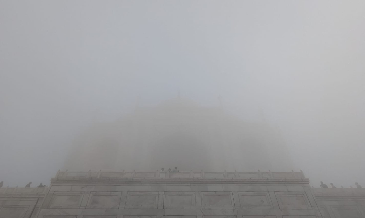 Οι τουρίστες κατέγραψαν εικόνες που δείχνουν το Ταζ Μαχάλ σχεδόν αόρατο πίσω από την ομίχλη.