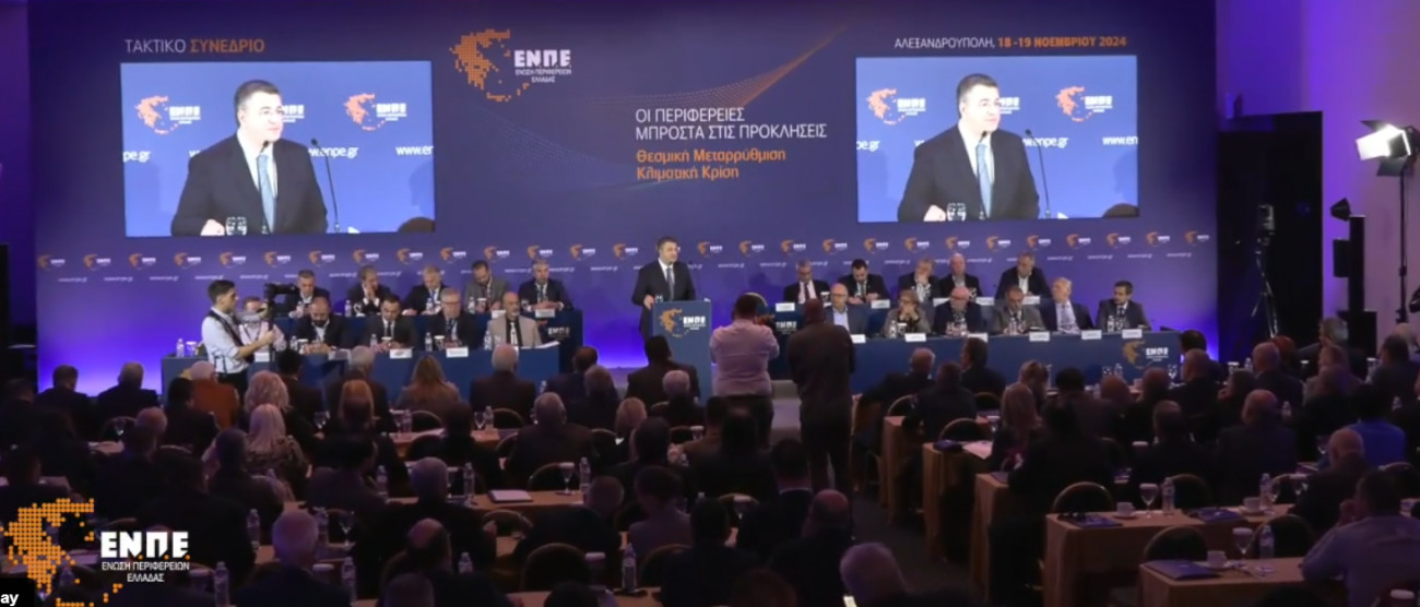 Στην Αλεξανδρούπολη διεξάγεται το Τακτικό Συνέδριο της Ένωσης Περιφερειών Ελλάδας (ΕΝΠΕ) με κεντρικό θέμα «Οι Περιφέρειες μπροστά στις προκλήσεις: Θεσμική Μεταρρύθμιση – Κλιματική Κρίση». Το συνέδριο, που συγκεντρώνει την προσοχή της τοπικής αυτοδιοίκησης, πραγματοποιείται χωρίς την παρουσία του περιφερειάρχη Αττικής Νίκου Χαρδαλιά, πρώτου αντιπροέδρου της ΕΝΠΕ, γεγονός που έχει προκαλέσει συζητήσεις για τις ισορροπίες εντός της Ένωσης.