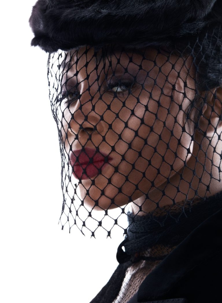 Φορώντας ένα πέπλο από δαντέλα που εκπέμπει μυστήριο η Βρετανή επιχειρηματίας και μοντέλο θέλει να είναι μια μοιραία γυναίκα μυστηρίου -και το καταφέρνει.