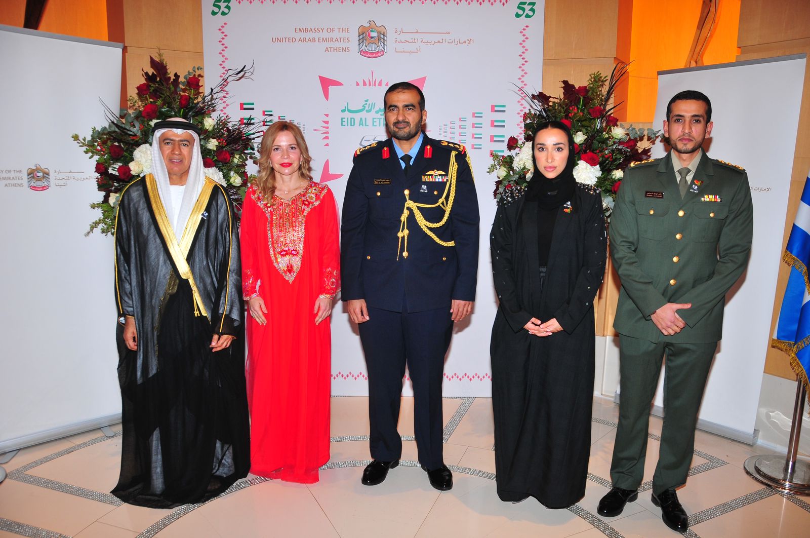 Τα 53 χρόνια από την ίδρυση τους γιορτάζουν τα Ηνωμένα Αραβικά Εμιράτα (ΗΑΕ), σε μία επέτειο που τίμησε και η Πρεσβεία των ΗΑΕ στην Αθήνα, με την καθιερωμένη δεξίωση, που πραγματοποιήθηκε την Τετάρτη.