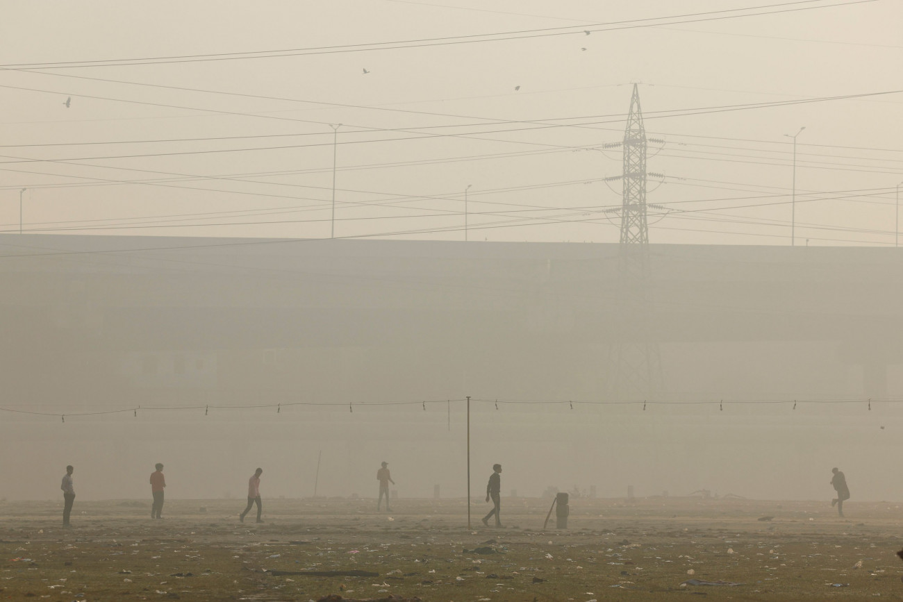 Με δυσκολία διακρίνονται πολίτες να παίζουν κρίκετ στο Δελχί. REUTERS/Anushree Fadnavis
