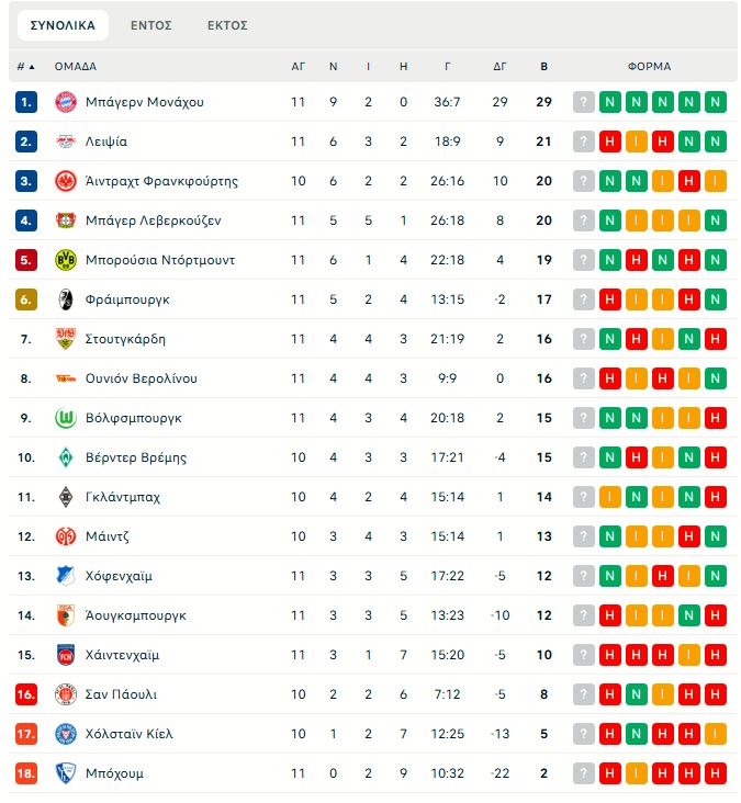 Η Λειψία με μεγάλα προβλήματα στην άμυνα ηττήθηκε με 4-3 στην έδρα της Χόφενχαϊμ και έχασε πολύτιμο έδαφος, ενώ η Στουτγκάρδη νίκησε στην έδρα της την Μπόχουμ με 2-0, με το πρώτο γκολ του Φούρλιχ (53′) να σημειώνεται μετά από ασίστ του ομογενή Ελβετού μπακ Λεωνίδα Στεργίου, που ήταν ξανά στο βασικό σχήμα των γηπεδούχων.