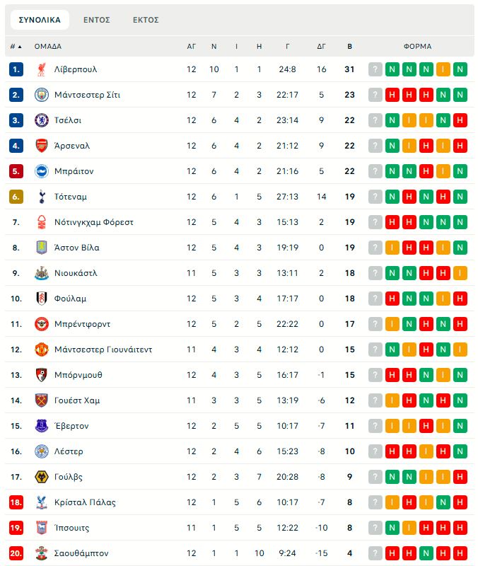 Στο +8 πλέον από τη Μάντσεστερ Σίτι έπειτα από 12 αγωνιστικές και την ερχόμενη Κυριακή η Λίβερπουλ υποδέχεται στο «Άνφιλντ» την… καταρρέουσα ομάδα του Πεπ Γκουαρντιόλα με στόχο το +11 που θα την κάνει αδιαφιλονίκητο φαβορί για τον τίτλο!