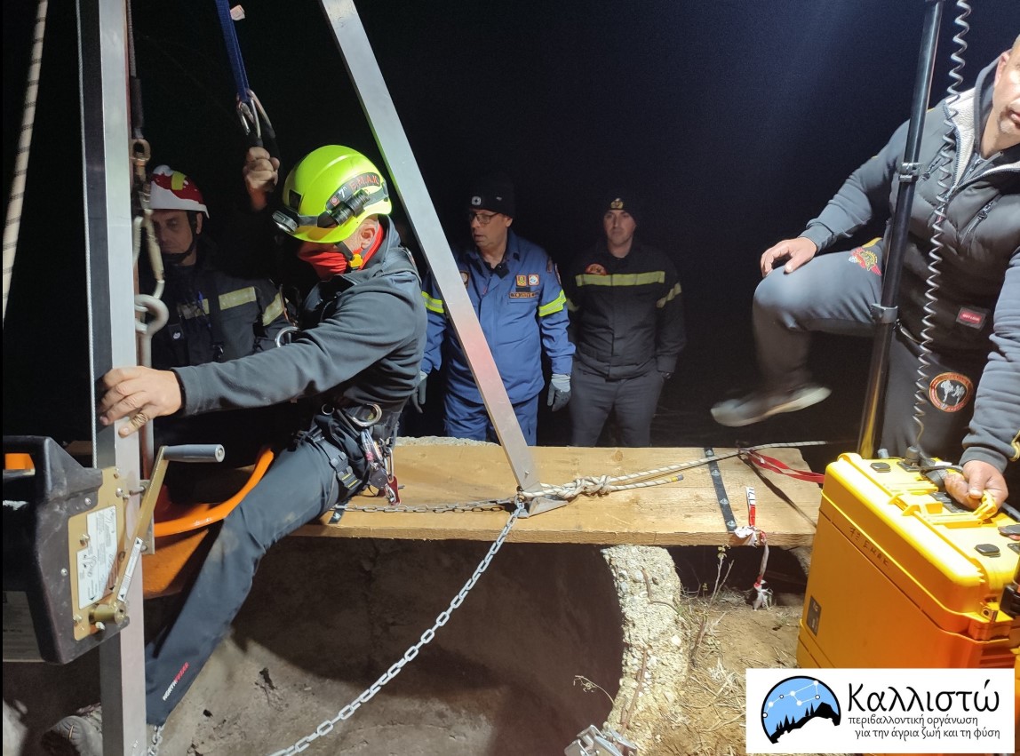 Στη συνέχεια το προσωπικό της 7ης ΕΜΑΚ εισήλθε και πάλι στο πηγάδι και ανέσυρε το ναρκωμένο πλέον ζώο.