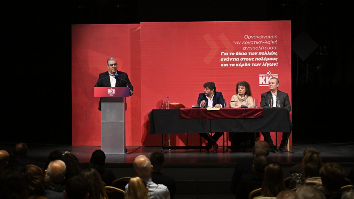 Ο γγ της ΚΕ του ΚΚΕ Δημήτρης Κουτσούμπας, μίλησε το απόγευμα της Τετάρτης στην σύσκεψη σωματείων, φορέων και συνδικαλιστών με θέμα: «Οργανώνουμε την εργατική-λαϊκή αντεπίθεση! Για το δίκιο των πολλών, ενάντια στους πολέμους και τα κέρδη των λίγων», που διοργάνωσε η Κομματική Οργάνωση Περιοχής Δυτικής Ελλάδας, στην Πάτρα.