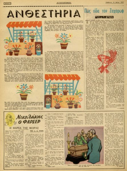 Στο τεύχος του «Ταχυδρόμου» που είχε κυκλοφορήσει το Σάββατο 4 Μαΐου 1957 υπήρχε ένα ενδιαφέρον κείμενο —μικρής έκτασης και βιωματικού χαρακτήρα— αφιερωμένο στον αινιγματικό Ζαχάρωφ. Συντάκτης του ήταν ο Γ. Φτέρης (λογοτεχνικό ψευδώνυμο του μανιάτη Γιώργου Τσιμπιδάρου, 1891-1967), δημοσιογράφος, κριτικός, συγγραφέας και ποιητής.