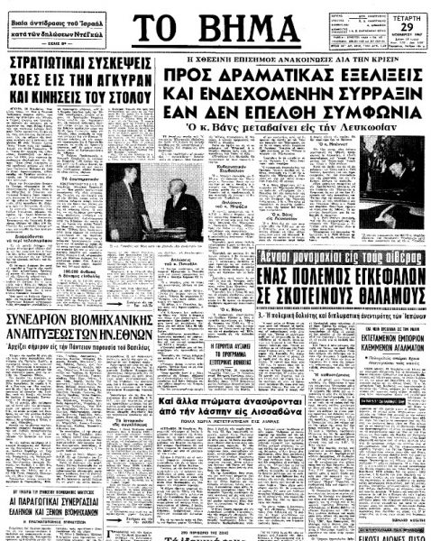 «ΤΟ ΒΗΜΑ», 29.11.1967, Ιστορικό Αρχείο «ΤΟ ΒΗΜΑ» & «ΤΑ ΝΕΑ»