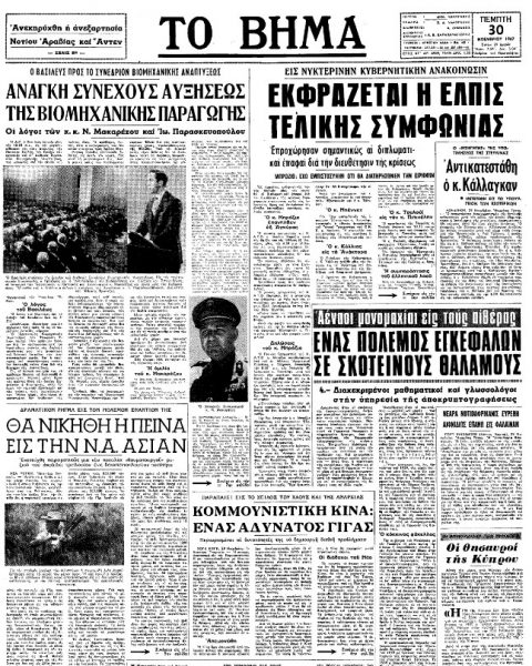 «ΤΟ ΒΗΜΑ», 30.11.1967, Ιστορικό Αρχείο «ΤΟ ΒΗΜΑ» & «ΤΑ ΝΕΑ»