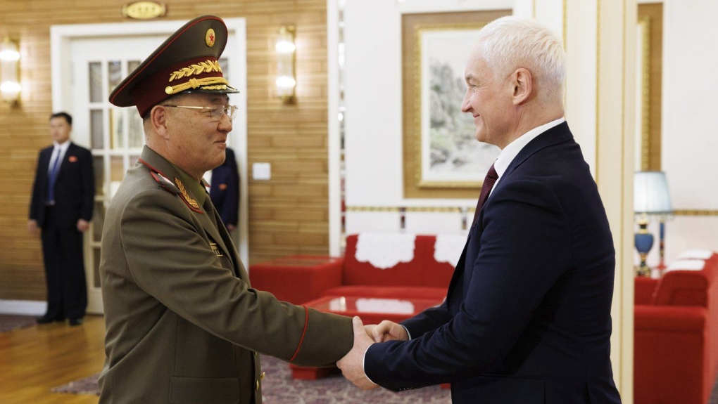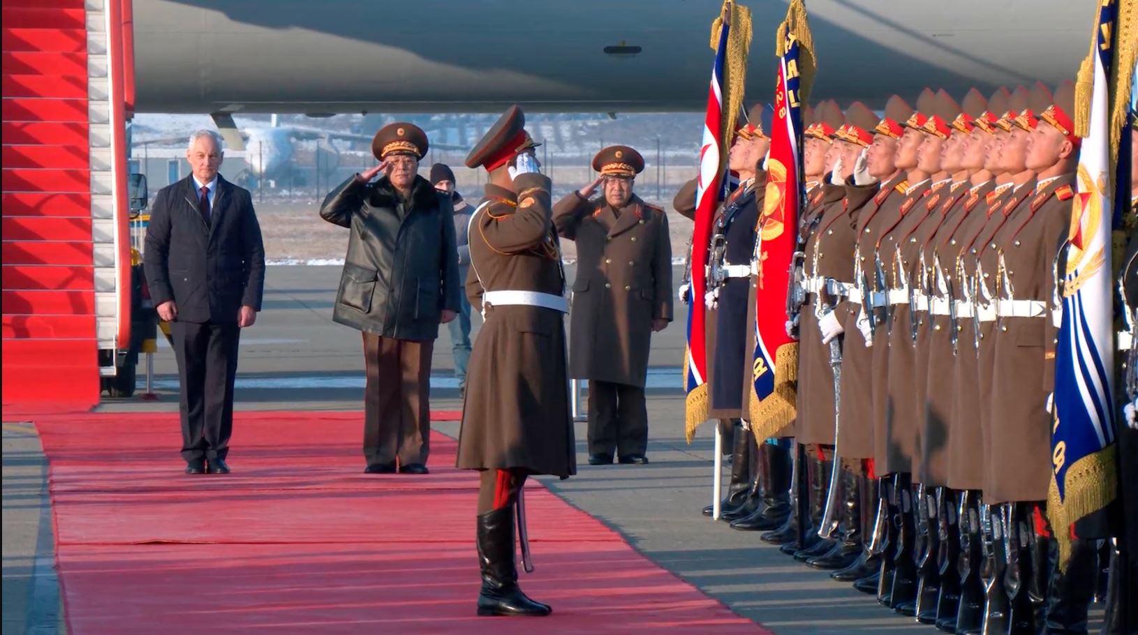 Οι φωτογραφίες που έδωσε στη δημοσιότητα το υπουργείο Άμυνας έδειχναν τον Μπελούσοφ να περπατά μαζί με τον υπουργό Άμυνας της Βόρειας Κορέας σε ένα κόκκινο χαλί στο αεροδρόμιο της Πιονγκγιάνγκ.