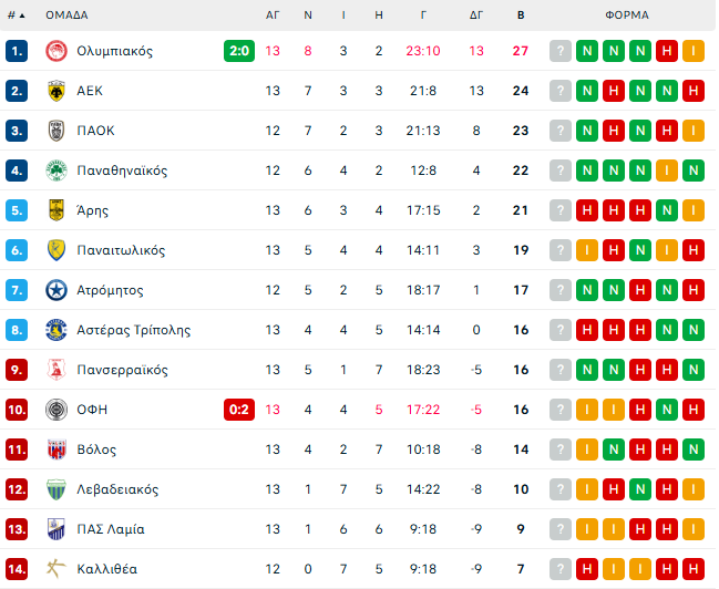 Τα αποτελέσματα και το πρόγραμμα της 13ης αγωνιστικής: