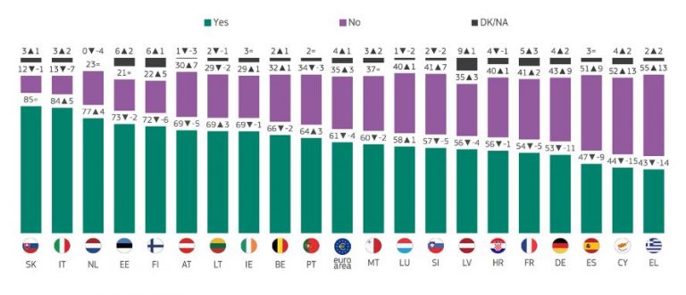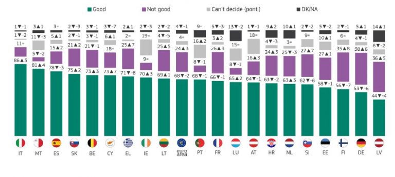 Οι Ιταλοί υποδέχονται με τον μεγαλύτερο ενθουσιασμό το σχέδιο και οι Λετονοί με σκεπτισκισμό. Η Ελλάδα βρίσκεται πάνω από το μέσο όρο με τους ερωτηθέντες, σε ποσοστό 71%, να τάσσονται υπέρ.