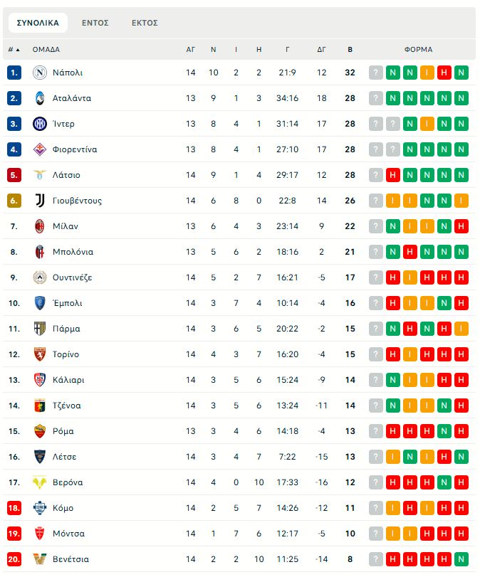 Η βαθμολογία της Serie A