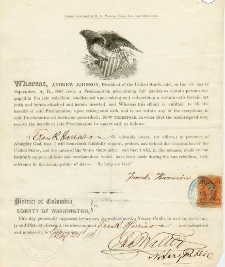 Ο πρώην πρόεδρος Άντριου Τζόνσον χορήγησε χάρη σε πρώην συνομοσπονδιακούς σε μια σειρά διακηρύξεων μετά τον Εμφύλιο Πόλεμο, κάνοντας αρχικά εξαιρέσεις και απαιτώντας από ορισμένους να υπογράψουν όρκο πίστης στις Ηνωμένες Πολιτείες προτού λάβουν χάρη.