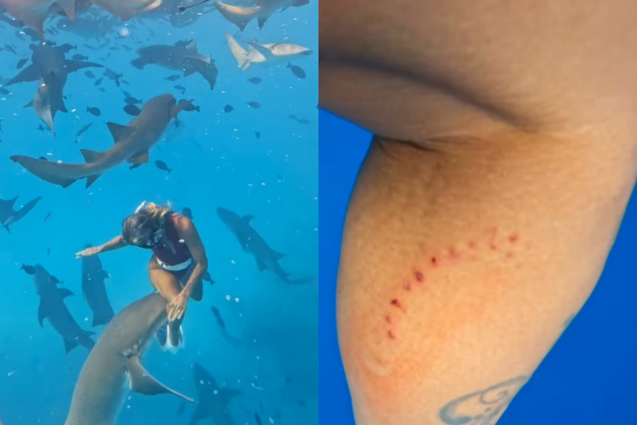 Η τολμηρή της πράξη όμως δεν της βγήκε σε καλό, καθώς ένας καρχαρίας της επιτέθηκε και την δάγκωσε στο δεξί πόδι.