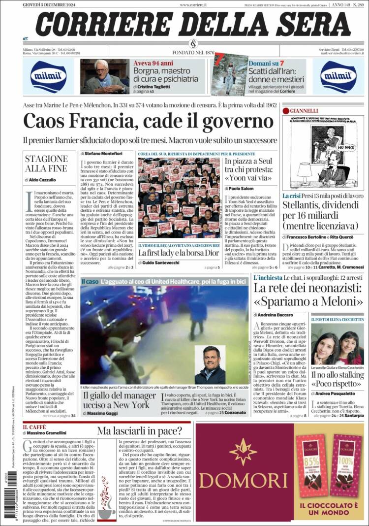 «Χάος στη Γαλλία, πέφτει η κυβέρνηση», ο τίτλος της πρώτης σε κυκλοφορία ιταλικής εφημερίδας