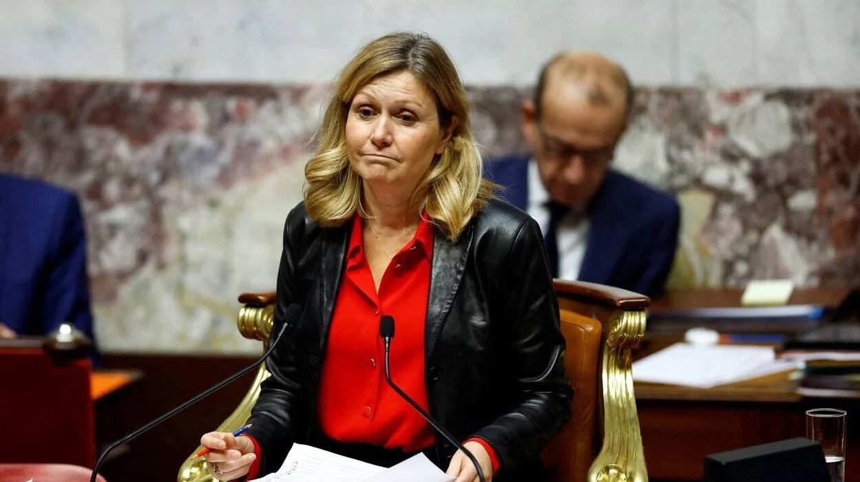 H Μπράουν-Πιβέ, πρόεδρος της Βουλής από το κόμμα του Μακρόν Αναγέννηση κατά τη διάρκεια της συζήτησης για τον προϋπολογισμό.