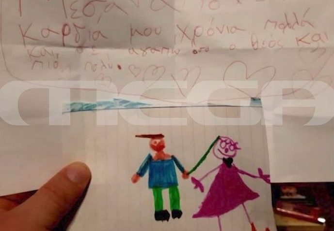 Στην συγκεκριμένη ζωγραφιά, αναγράφεται, «μέσα από την καρδιά μου, χρόνια πολλά και σε αγαπώ όσο ο θεός».