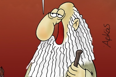 Τη σημερινή μέρα ο Αρκάς επέλεξε να μας παρουσιάσει ένα σκίτσο, χιουμοριστικό όπως πάντα άλλωστε, στο οποίο μια φωνή λέει στον Θεό από μακριά «Η ανθρωπότητα εξελίσσεται, προφήτη!». Αυτός με τη σειρά του απαντά: «Ναι, ο πολιτισμός των βαρβάρων έδωσε τη θέση του στη βαρβαρότητα των πολιτισμένων!».