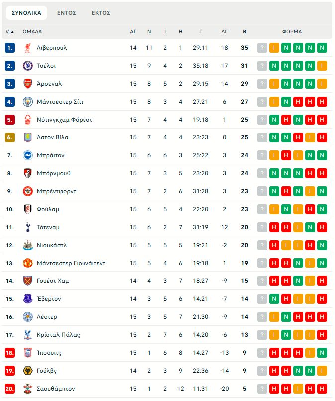 - Η βαθμολογία της Super League μετά τα παιχνίδια του Σαββάτου (6/12)